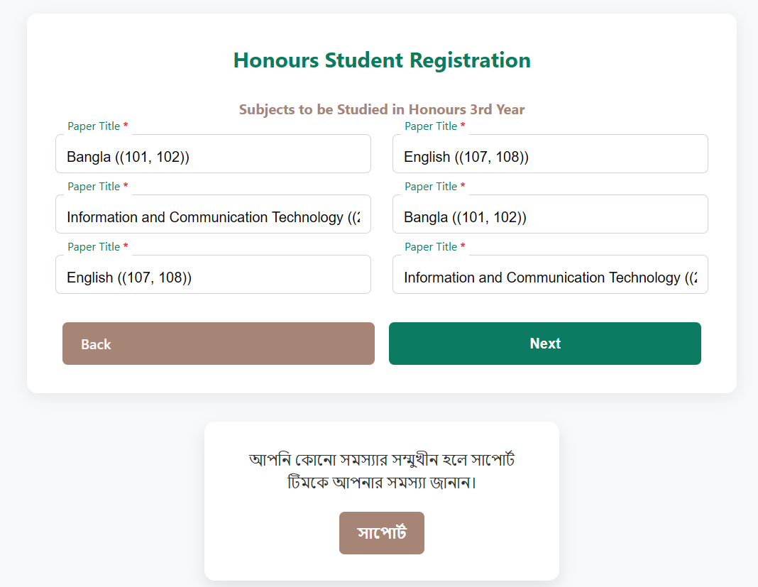 Step-4. Subject Selection ( বিষয় নির্বাচন)
