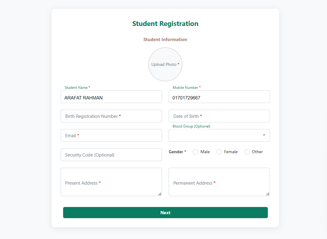 Step-1. Student Information (শিক্ষার্থী তথ্য)